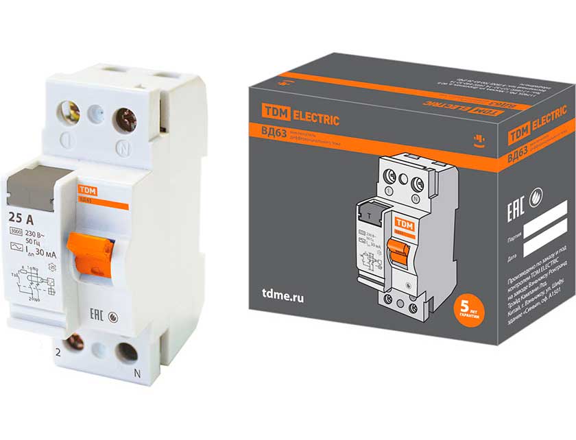 УЗО SQ0220-0002 TDM ВД63 2Р 25А 30мА электронное