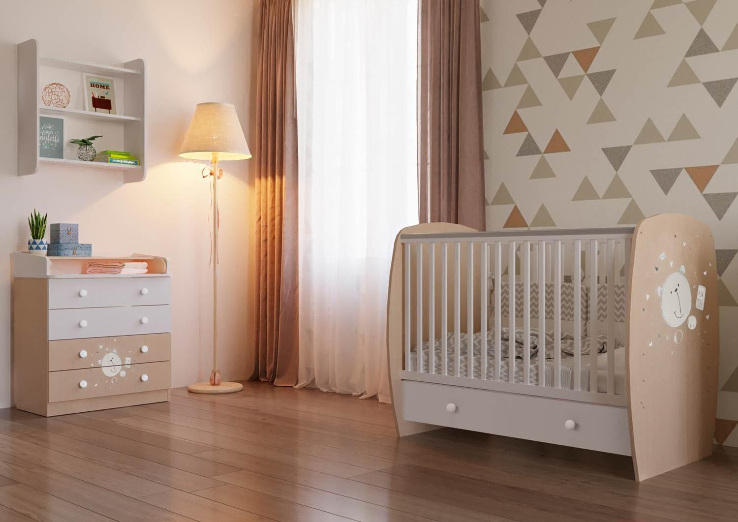 - Цвет белый, с рисунком (мишка), дерево светлое (дуб пастельный)