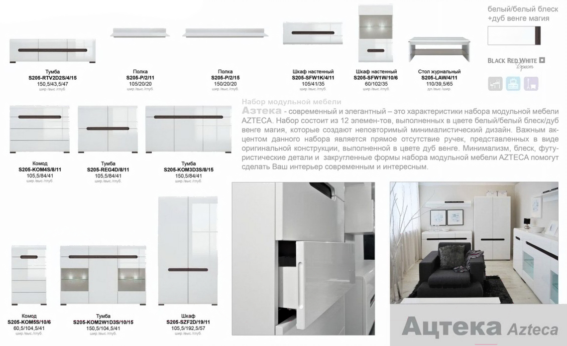 Тумба Black Red White Azteca S205-KOM3D3S/8/15 (белый/белый блеск)