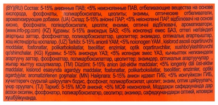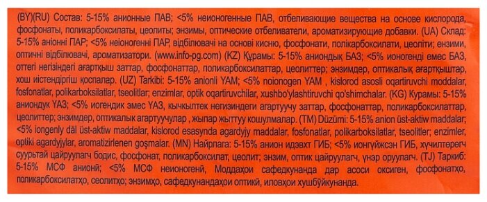 • Состав с отбеливателем, с кондиционером, с энзимами