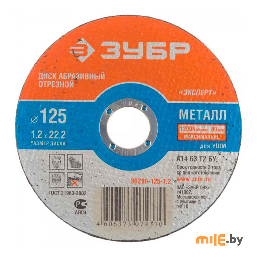 Круг отрезной абразивный ЗУБР по мет для УШМ 125*1,2*22,2мм 36200-125-1,2-z02