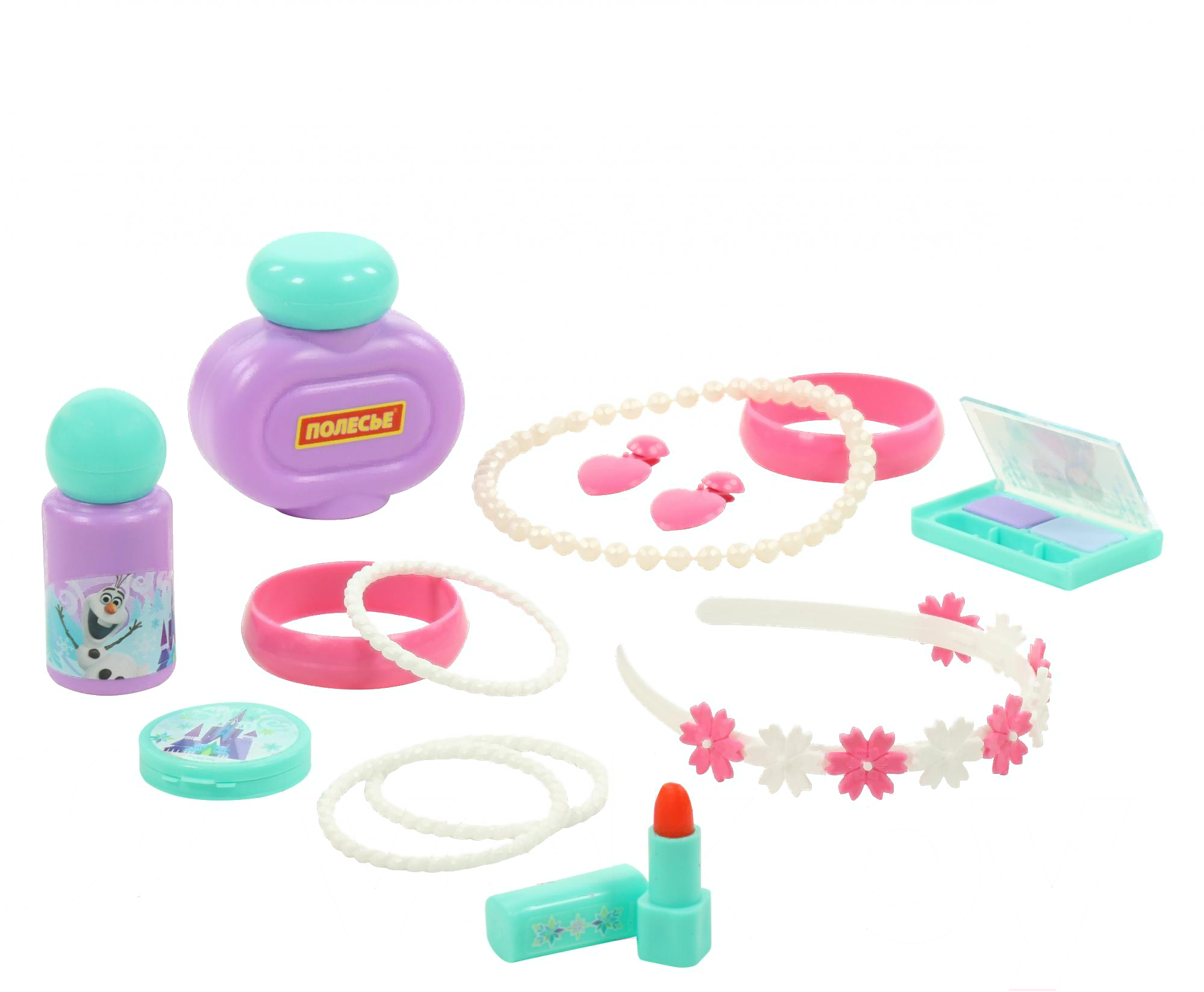 • Вид косметики игрушечная пудра (1 шт.), игрушечные тени (1 шт.), игрушечная помада (1 шт.), игрушечный флакон (3 шт.)