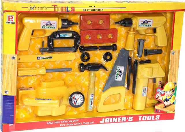 - Инструмент в наборе пила, шуруповерт, молоток, отвертка, струбцина, перфоратор, лобзик, рубанок