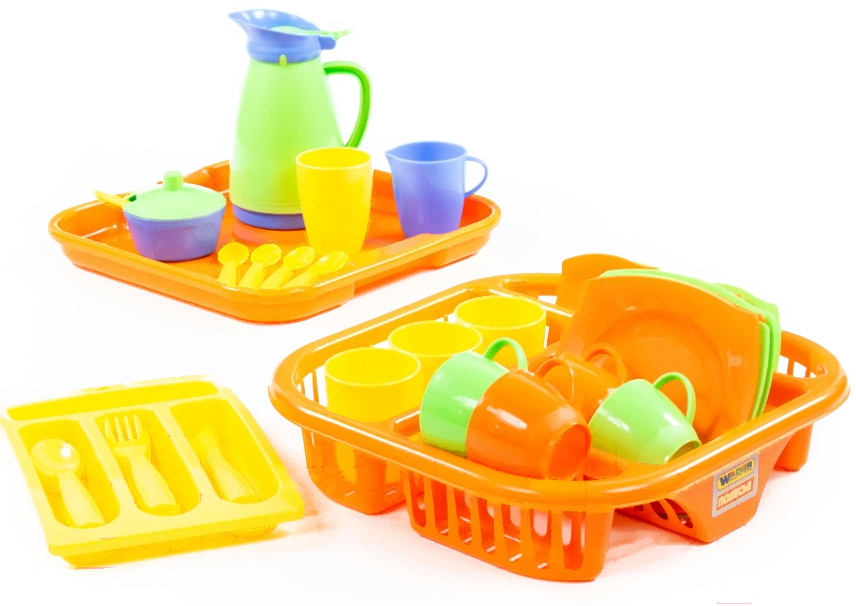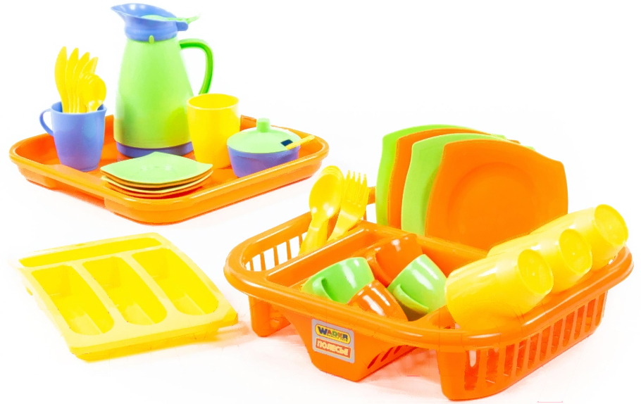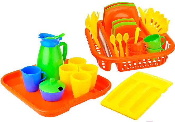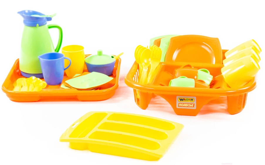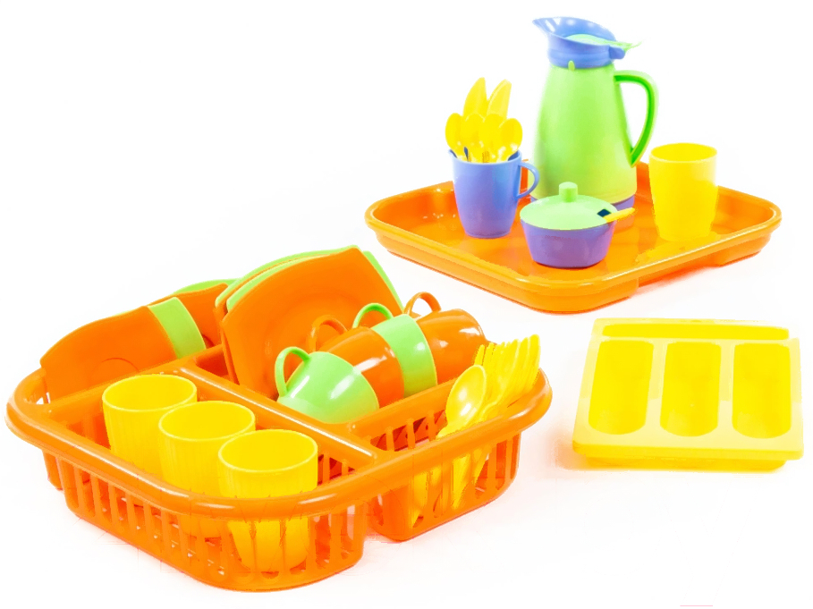 Набор игрушечной посуды Полесье Алиса с сушилкой, подносом и лотком на 4 персоны / 40718