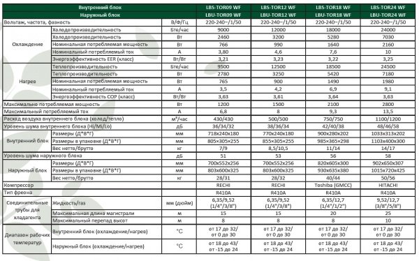 Кондиционер Leberg LBS/LBU-TOR09WF