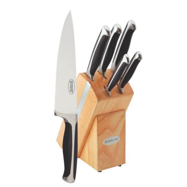 - Комплектация Нож разделочный, Нож универсальный, Нож для чистки овощей, Подставка, Нож поварской, Нож для хлеба