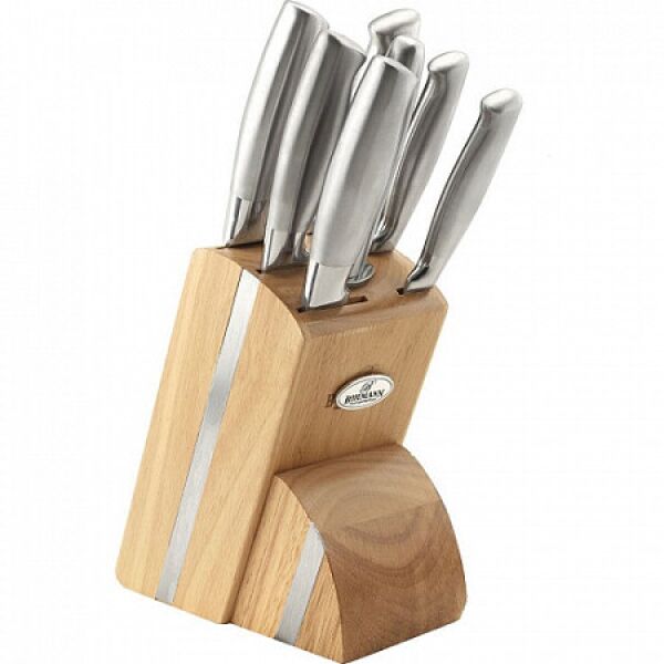 - Комплектация Нож разделочный, Нож универсальный, Нож для чистки овощей, Нож Сантоку, Подставка, Нож поварской, Нож для хлеба, Заточка для ножей