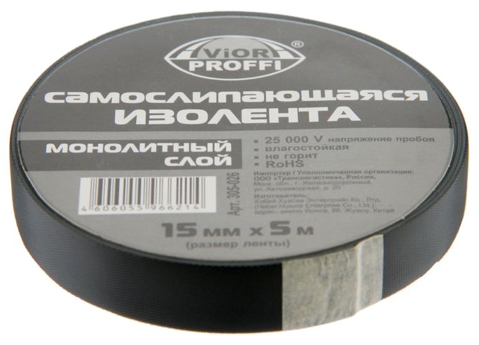 - Дополнительная информация самослипающаяся влагостойкая изолента; электрическая прочность (напряжение пробоя) не менее 25 kV, относительное удлинение при разрыве:не менее 500 %; температурная устойчивость: до +90 °С, кратковременно до +130 °С