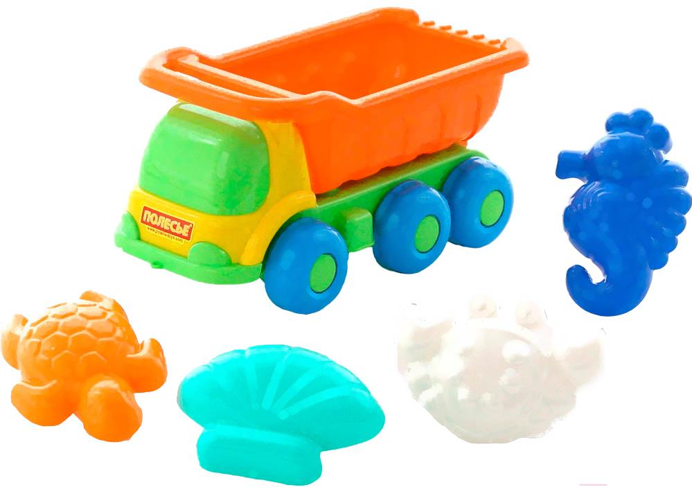 - Комплектация формочки (краб №2 + черепаха + морской конёк + ракушка №2), тачка (автомобиль-самосвал)