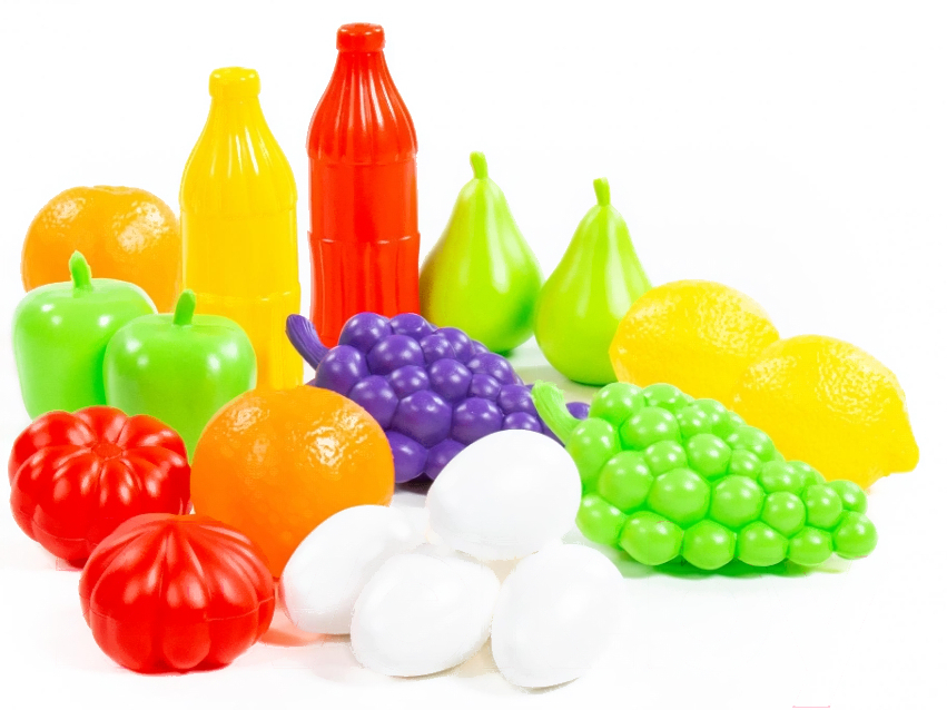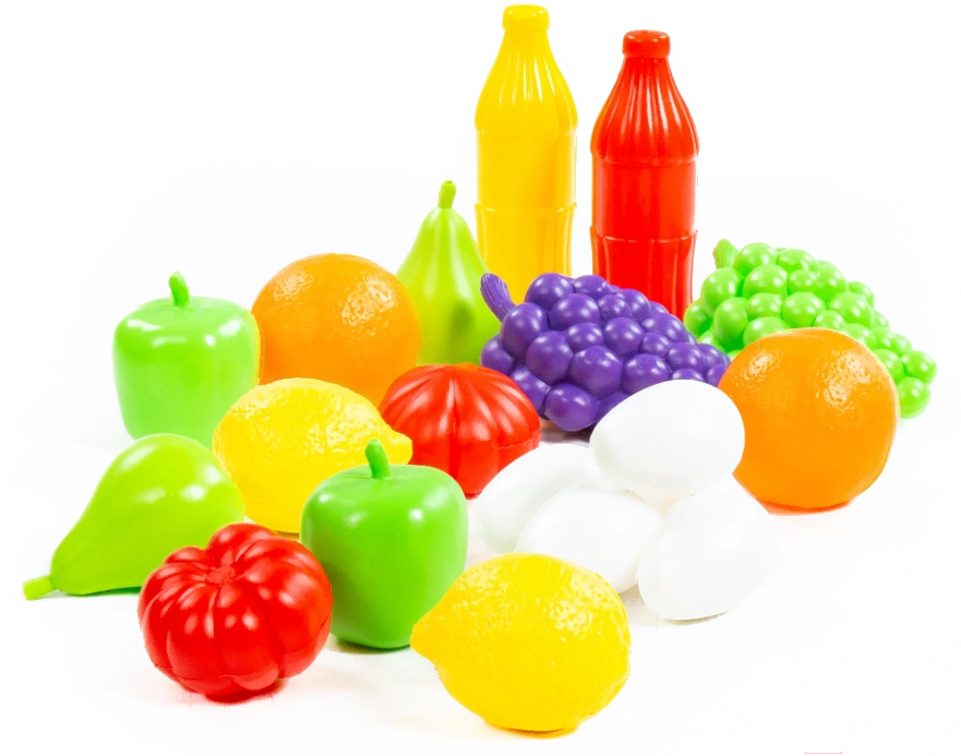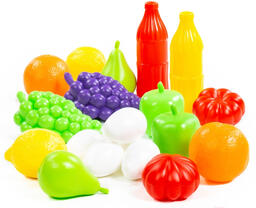 • Продукты в комплекте фрукты (лимон – 2 шт., груша – 2 шт., яблоко – 2 шт., помидор – 2 шт., в), яйцо (5 шт.), напитки (2 шт.)
