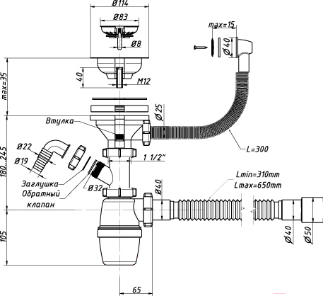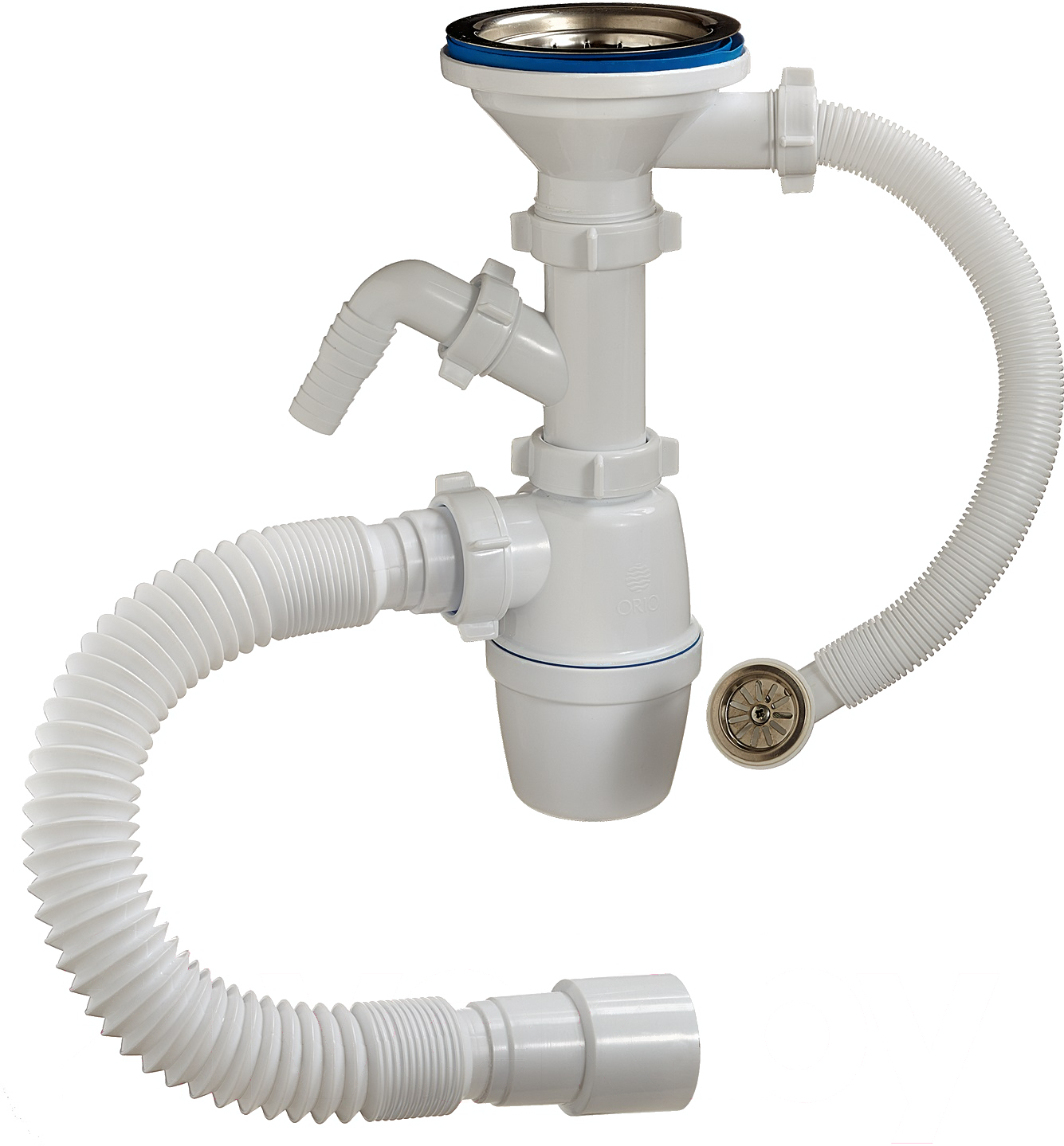 - Комплект поставки горловина (с переливом), заглушка, гайка (х5), перелив, патрубок (с входом), стакан, штуцер, комплект решетки (х2), корпус, гофра (х2), прокладки