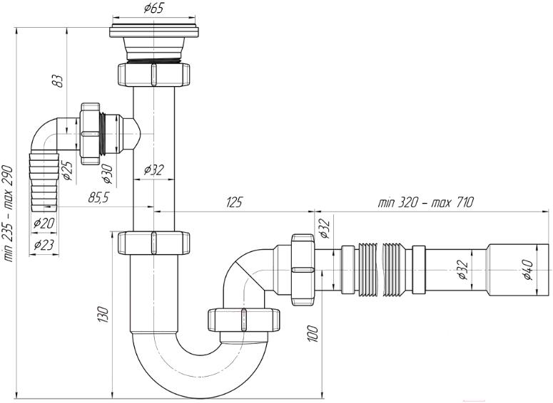 • Диаметр сливной трубы 40 мм