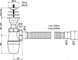 - Тип сифона/выпуска бутылочный (колбовый)