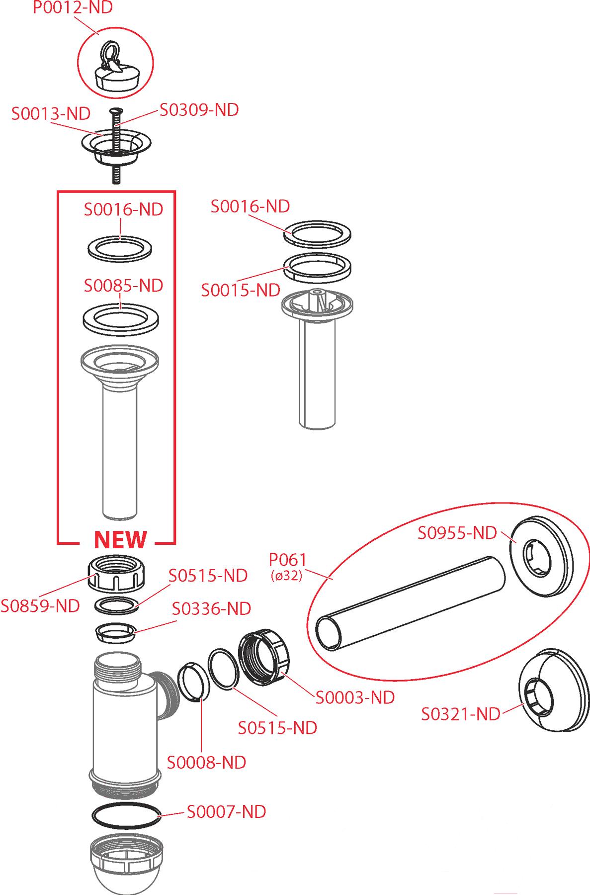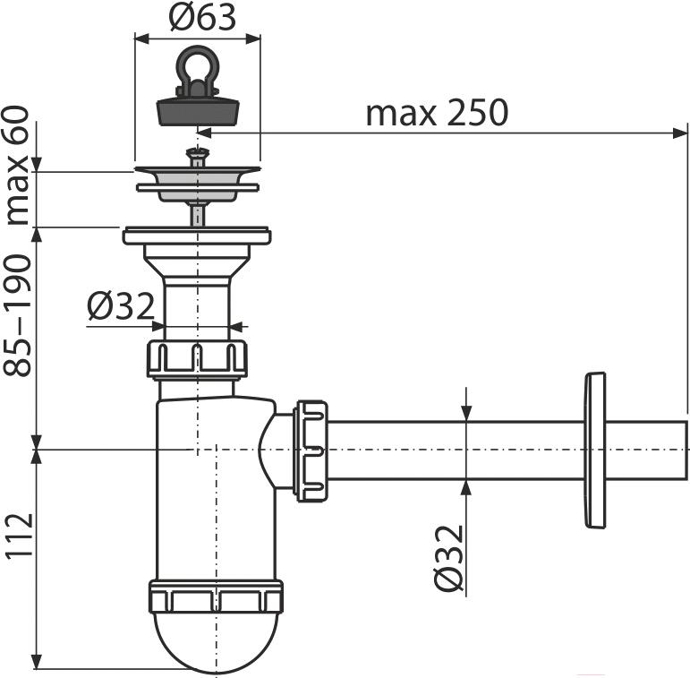 • Комплект поставки штуцеры, юбка, корпус сифона, решетка слива, пробка