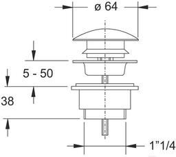 Выпуск (донный клапан) Bonomini 0961ОТ54S7; Назначение: для умывальника, для сифона; Материал: латунь, нержавеющая сталь; Механизм перекрытия сливного отверстия: автоматический (ClickClack); Ширина/диаметр: 6.4 см