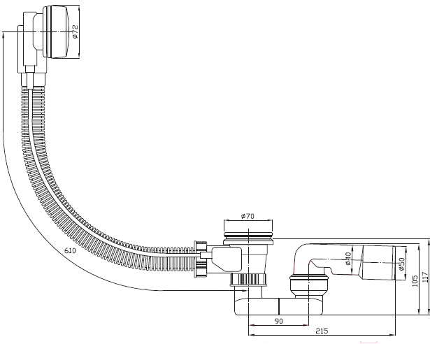 - Диаметр сливного отверстия 50 мм (40-50 мм)