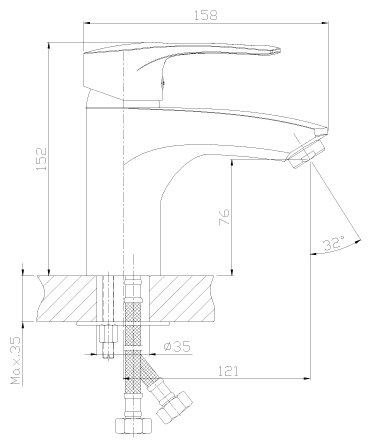 Смеситель для умывальника, однорычажный, запорный механизм: керамический картридж.