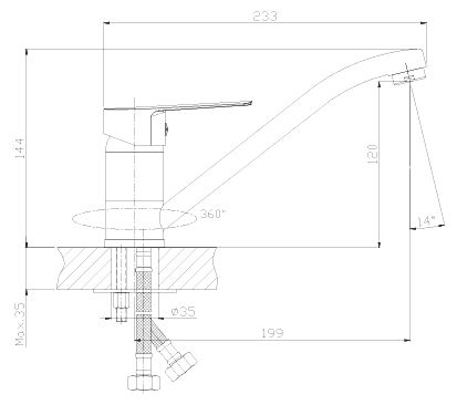 Смеситель для кухни, однорычажный, запорный механизм: керамический картридж, излив: поворотный.