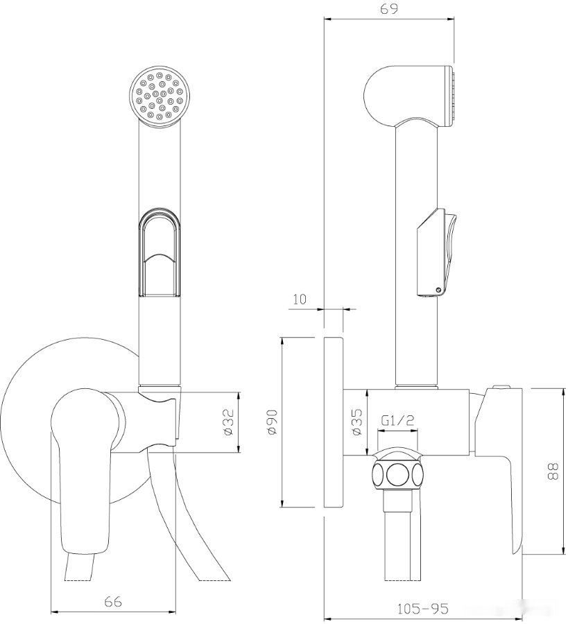 Смеситель для биде, однорычажный, монтаж настенный, материал корпуса: латунь.