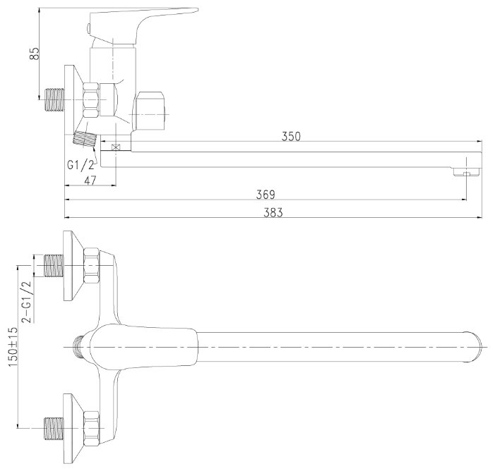 Смеситель для ванны/душа, однорычажный, запорный механизм: керамический картридж, излив: поворотный.