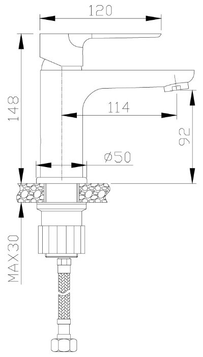 Смеситель для умывальника, однорычажный, запорный механизм: керамический картридж.