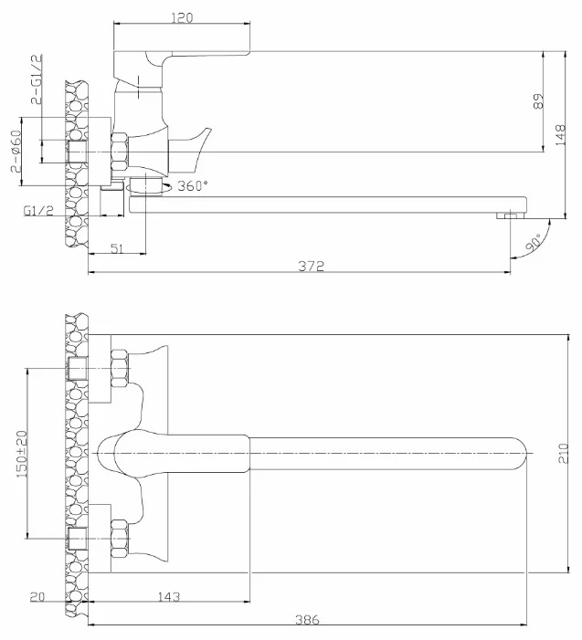 Смеситель для ванны/душа, однорычажный, запорный механизм: керамический картридж, излив: поворотный.