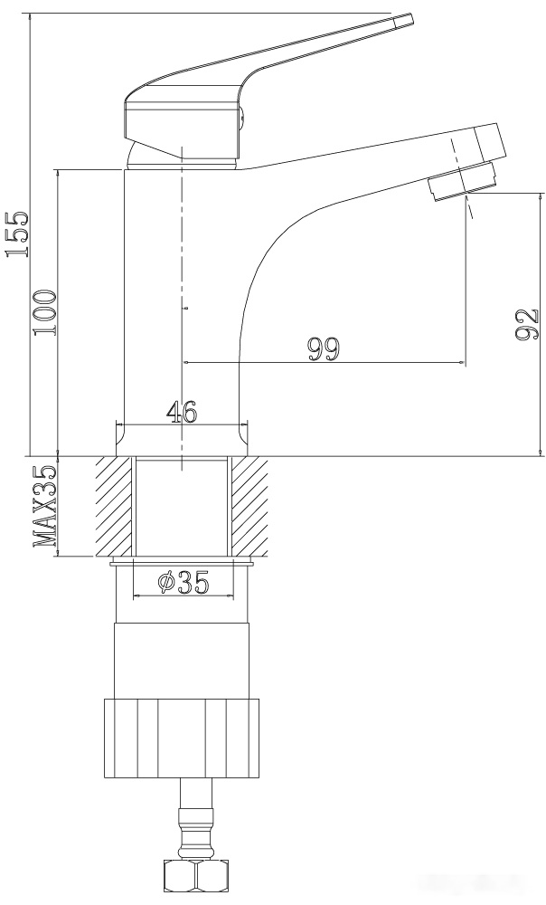 Смеситель для умывальника, однорычажный, излив: фиксированный, монтаж на поверхность сантехники.