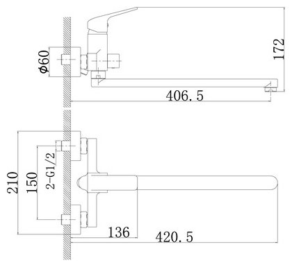 Смеситель для ванны/душа, однорычажный, запорный механизм: керамический картридж, излив: поворотный, материал корпуса: латунь.