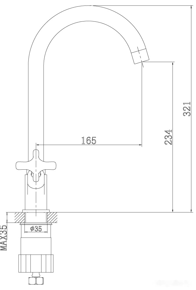 Смеситель для кухни, излив: поворотный, монтаж на поверхность сантехники.