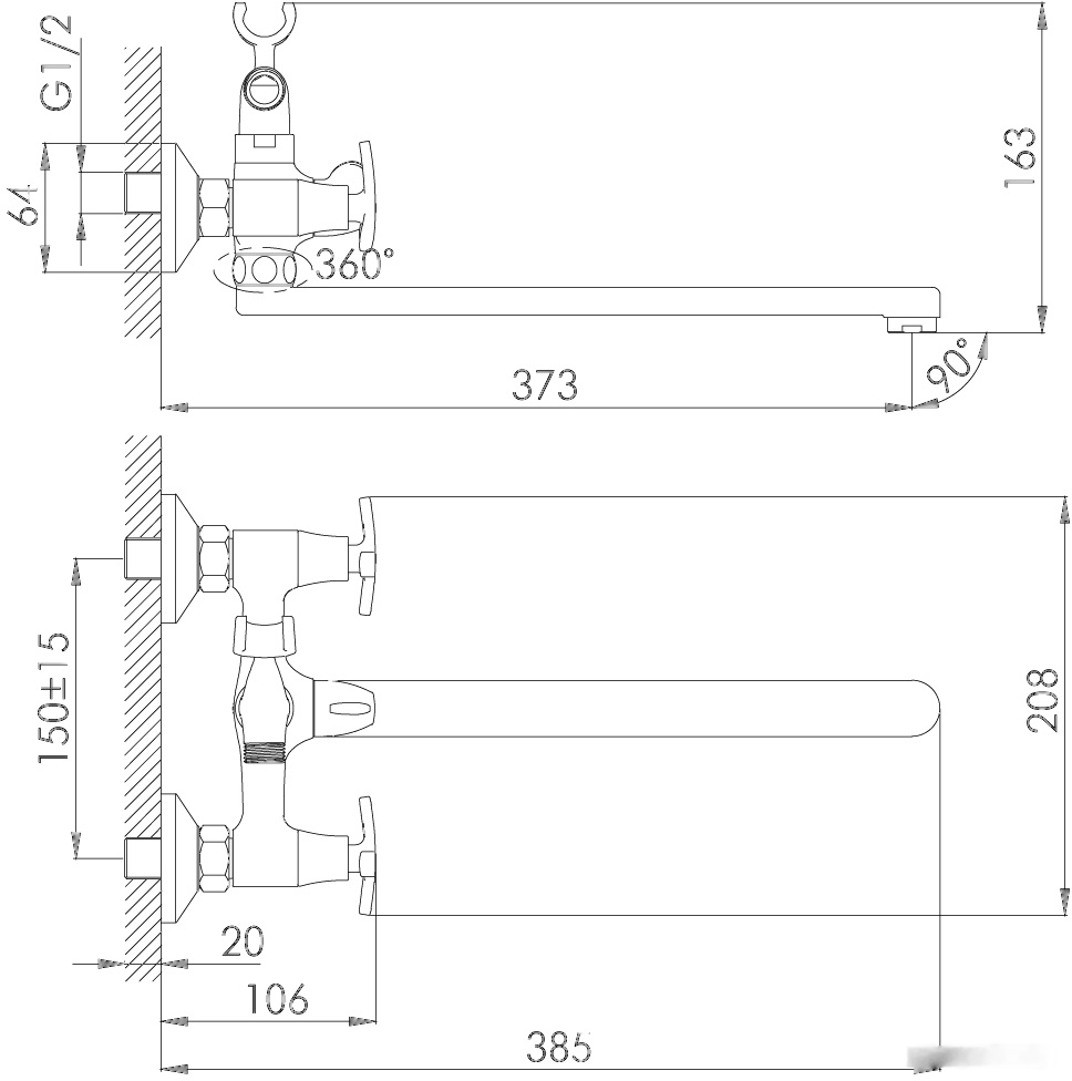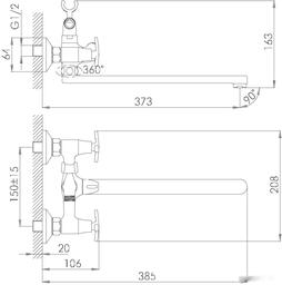 Смеситель для ванны/душа, излив: поворотный, монтаж настенный, материал корпуса: латунь.
