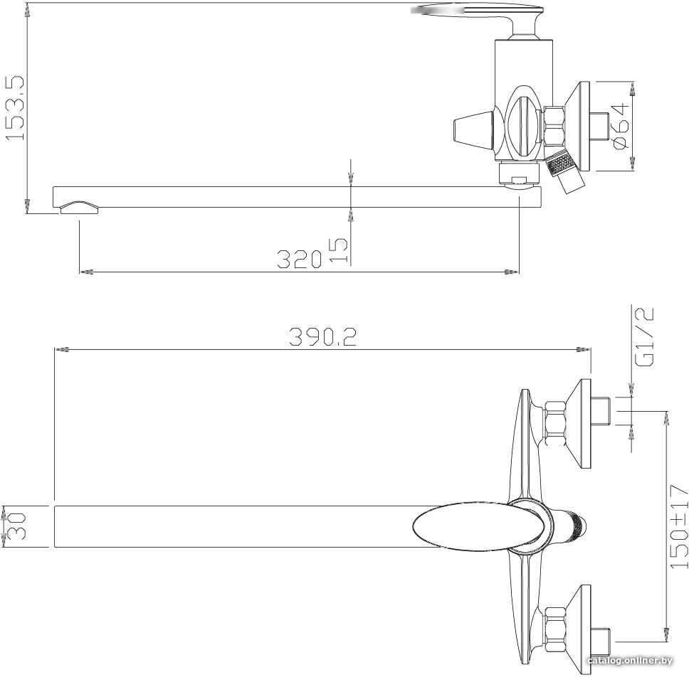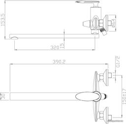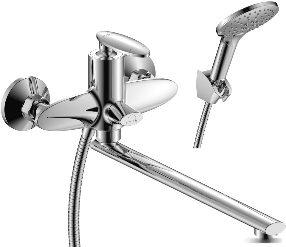 Смеситель для ванны/душа, излив: поворотный, монтаж настенный, материал корпуса: латунь.