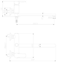 Смеситель для ванны/душа, однорычажный, запорный механизм: керамический картридж, излив: поворотный.