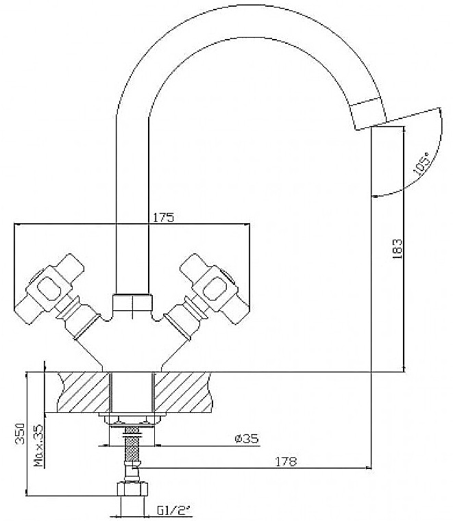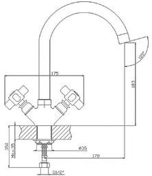 Смеситель для кухни, запорный механизм: керамический картридж, излив: поворотный, материал корпуса: латунь.
