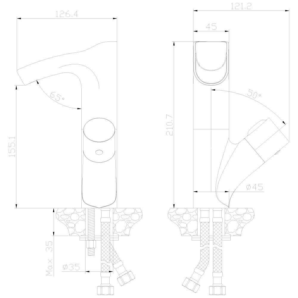 Смеситель для умывальника, однорычажный, запорный механизм: керамический картридж, излив: каскадный, кол-во монтажных отверстий 1.