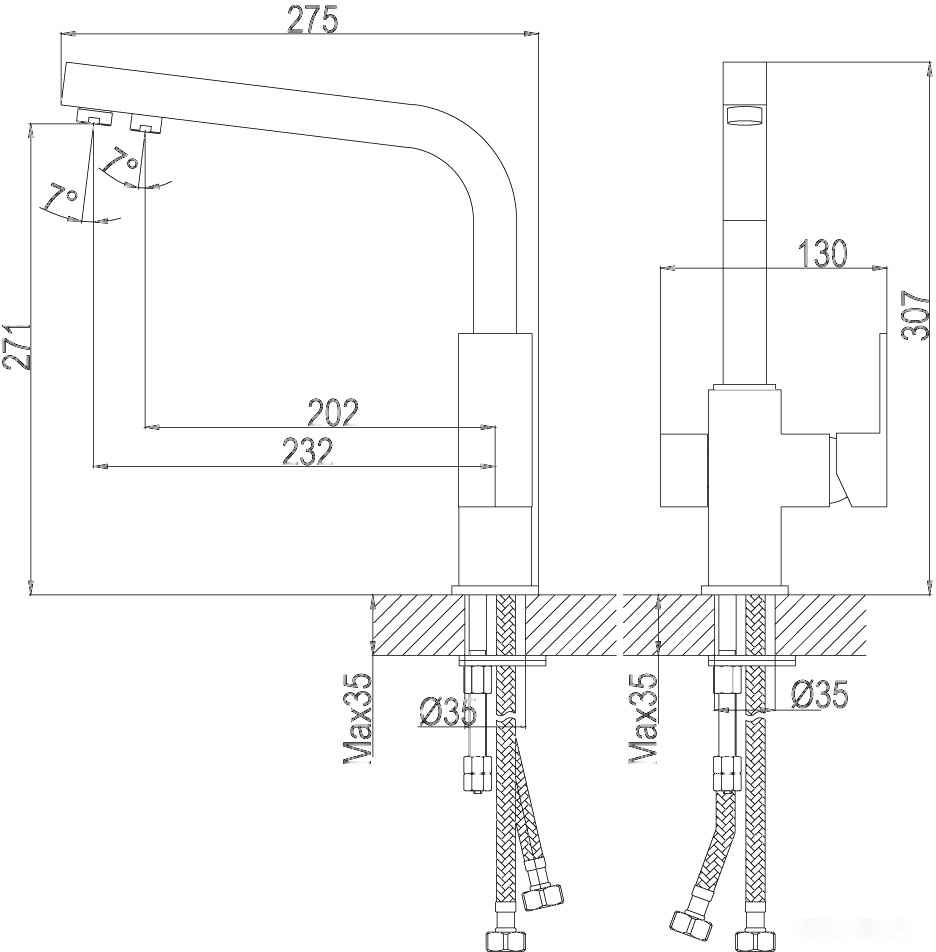 Смеситель для кухни, однорычажный, излив: поворотный, монтаж на поверхность сантехники, материал корпуса: латунь.