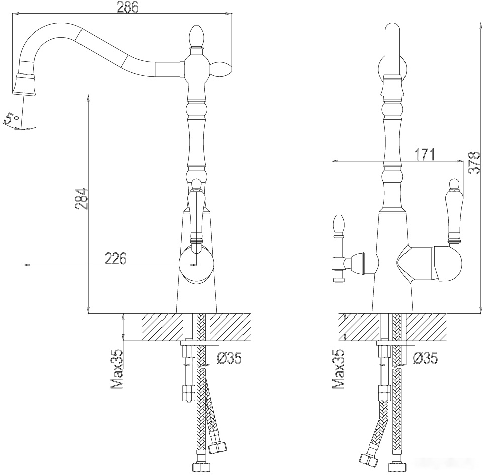 Смеситель для кухни, однорычажный, излив: поворотный, монтаж на поверхность сантехники, материал корпуса: латунь.