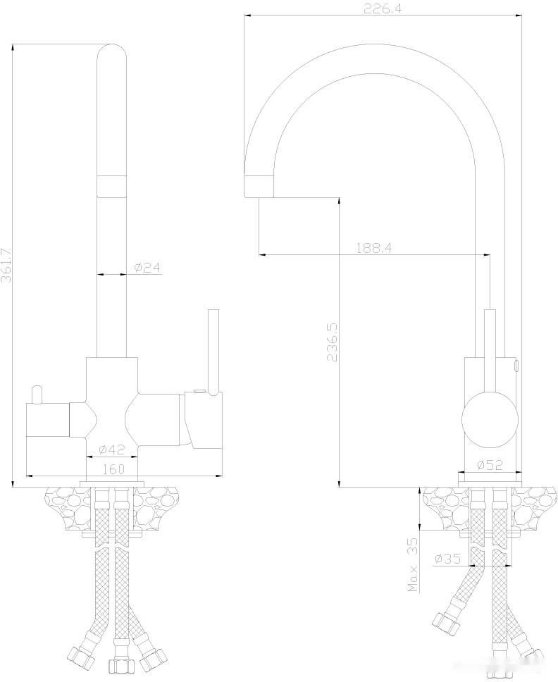 Смеситель для кухни, однорычажный, излив: поворотный, монтаж на поверхность сантехники, материал корпуса: латунь.