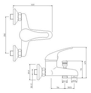 Смеситель для ванны/душа, однорычажный, запорный механизм: керамический картридж, материал корпуса: латунь.