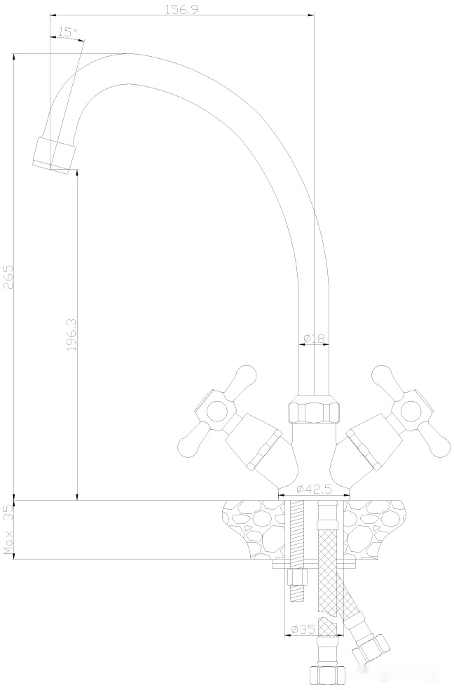 Смеситель для кухни, излив: поворотный, монтаж на поверхность сантехники, материал корпуса: латунь.