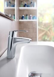 Смеситель для умывальника, однорычажный, запорный механизм: керамический картридж, излив: фиксированный, монтаж на поверхность сантехники.
