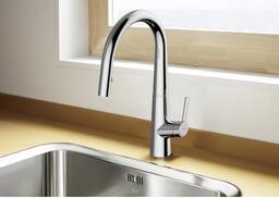 Смеситель для кухни, однорычажный, запорный механизм: керамический картридж, излив: фиксированный, вытягивающийся, кол-во монтажных отверстий 1, материал корпуса: латунь.