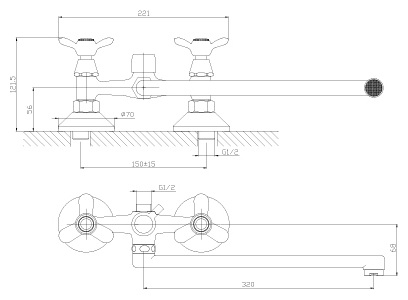 Смеситель для ванны/душа, запорный механизм: керамический картридж, излив: поворотный.