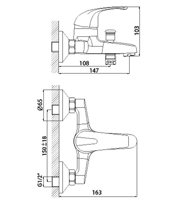 Смеситель для ванны/душа, однорычажный, запорный механизм: керамический картридж, материал корпуса: латунь.