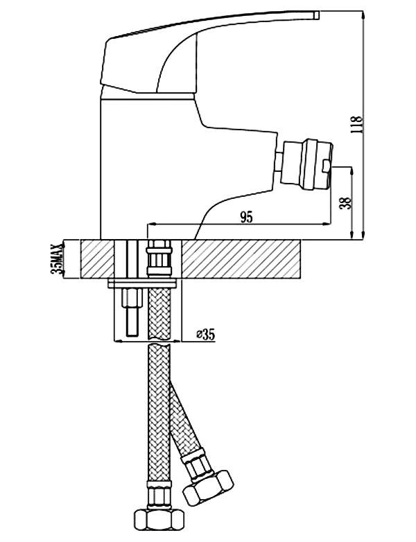 Смеситель для биде, однорычажный, запорный механизм: керамический картридж, материал корпуса: латунь.