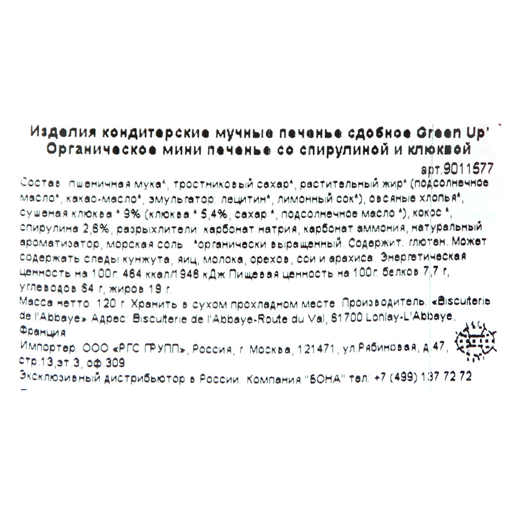 - Состав пшеничная мука, тростниковый сахар, растительный жир (подсолнечное масло, какао-масло, эмульгатор : лецитины, лимонный сок), овсянка, сушеная клюква 9% (клюква 5. 4%, сахар, подсолнечное масло), кокосовое, спирулина 2. 6%, разрыхлители: карбонаты натрия-карбонаты аммония, натуральный ароматизатор, морская соль. Из органического сельского хозяйства. Может содержать следы сезама, яйца, молока, плодов шелухи, сои и арахиса