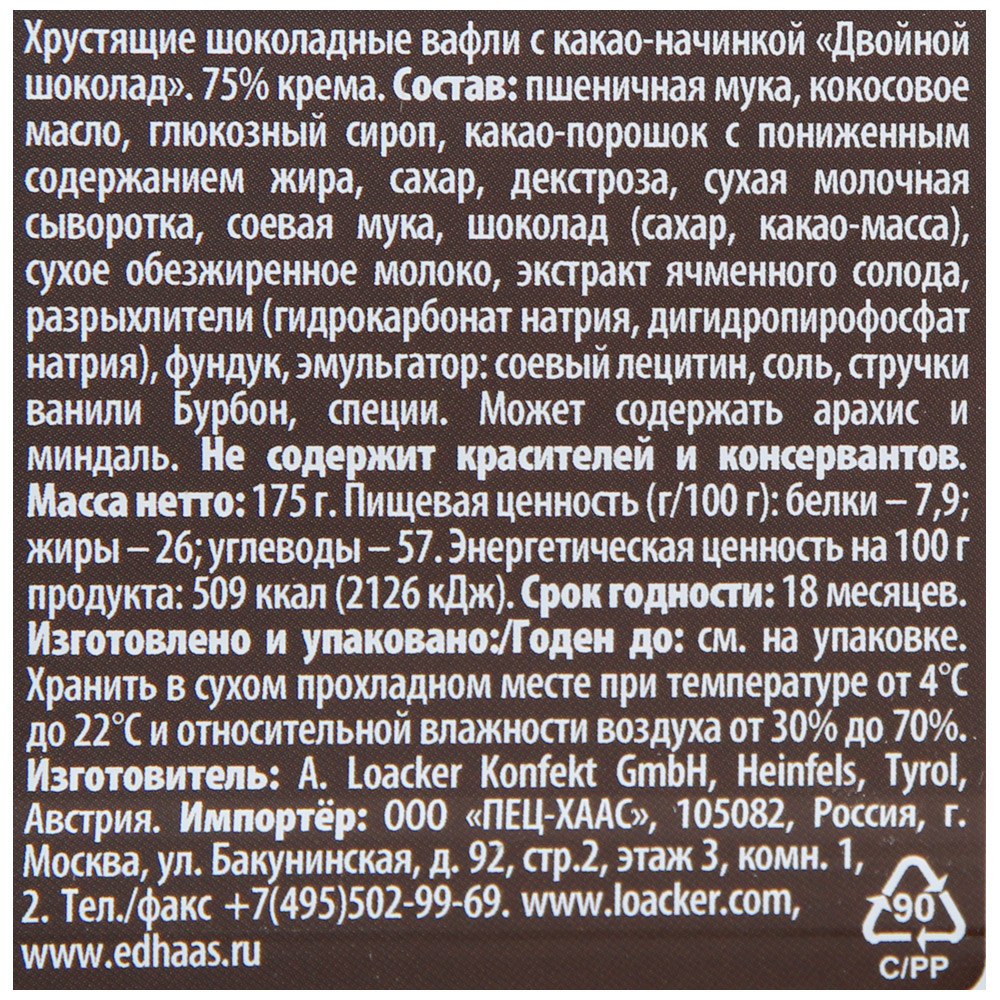 - Состав пшеничная мука, кокосовое масло, глюкозный сироп, какао-порошок с пониженным содержанием жира, сахар, декстроза, сухая молочная сыворотка, соевая мука, шоколад (сахар, какао-масса), сухое обезжиренное молоко, экстракт ячменного солода, разрыхлители (гидрокарбонат натрия, дигидропирофосфат натрия), фундук, эмульгатор: соевый лецитин, соль, стручки ванили Бурбон, специи. Может содержать арахис и миндаль. Не содержит красителей и консервантов