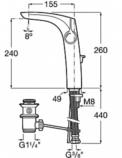 Смеситель для умывальника, однорычажный, запорный механизм: керамический картридж, излив: фиксированный, монтаж на поверхность сантехники, кол-во монтажных отверстий 1, материал корпуса: латунь.
