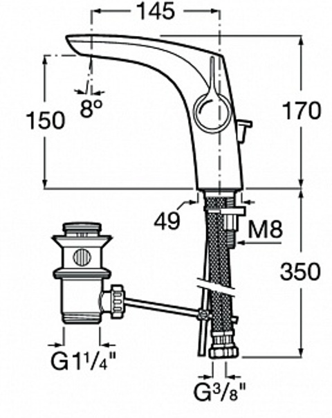 Смеситель для умывальника, однорычажный, запорный механизм: керамический картридж, излив: фиксированный, монтаж на поверхность сантехники, кол-во монтажных отверстий 1, материал корпуса: латунь.
