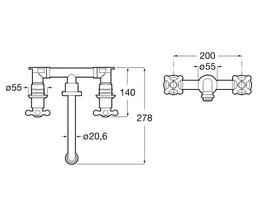 Смеситель для умывальника, двухвентильный, встраиваемый, запорный механизм: кран-букса, излив: фиксированный, кол-во монтажных отверстий 3, материал корпуса: латунь.