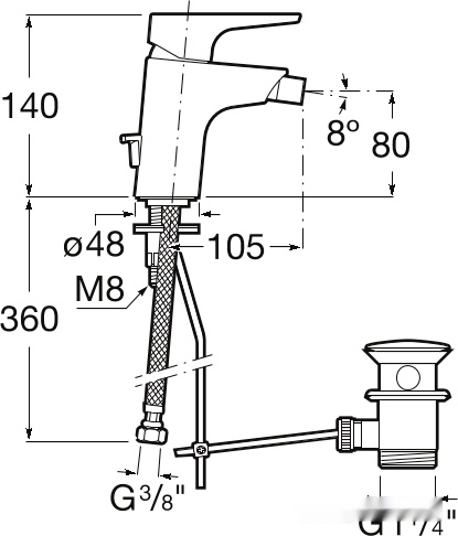 Смеситель для биде, однорычажный, запорный механизм: керамический картридж, излив: фиксированный, материал корпуса: латунь.